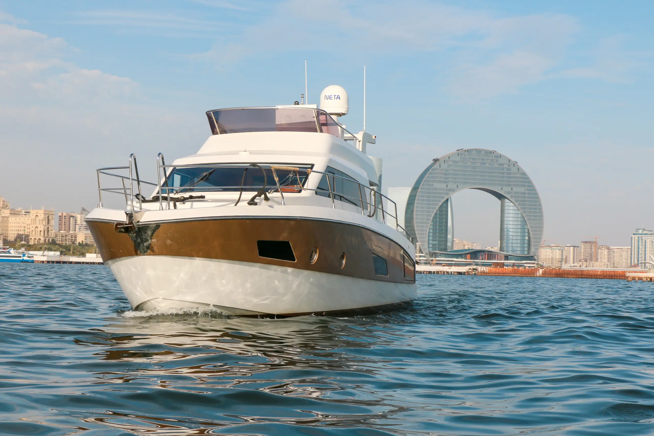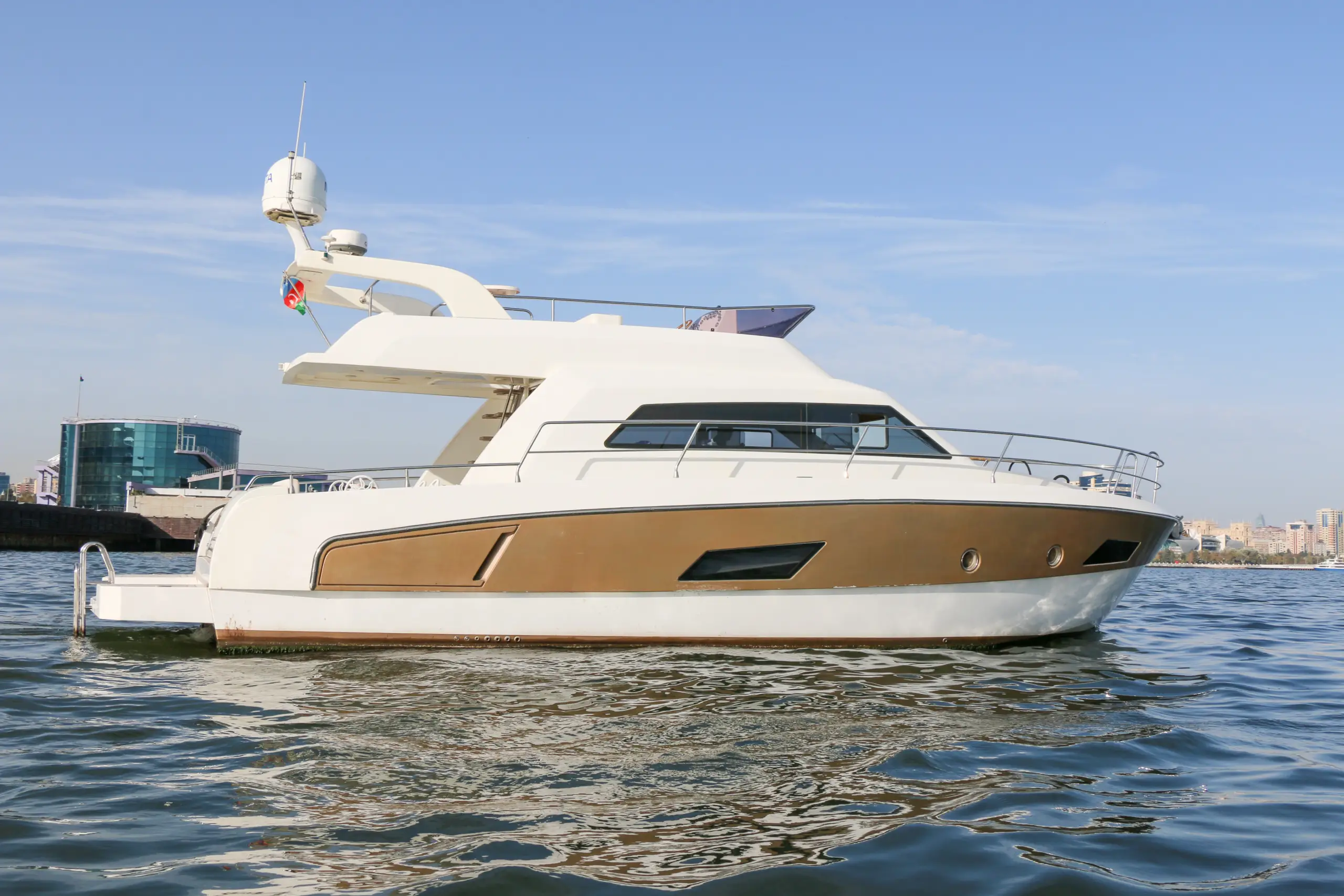 Expect a premium yachting experience with elegant design, comfortable cabins for rest, an open flybridge for sunbathing and panoramic views, attentive service (if crewed), and unforgettable moments on the water.